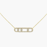 Elegantní a velmi nositelný – tento náhrdelník spojuje nadčasovou módu s dynamickým leskem. Tři pohyblivé diamanty v briliantovém brusu vytvářejí jemný tanec světla; každý z nich se odhaluje s každým pohybem. Filigránský design a elegantní akcenty pavé zdůrazňují lesk diamantů a vytvářejí rafinovaný vzhled, který doplňuje jak každodenní kombinace, tak speciální příležitosti.