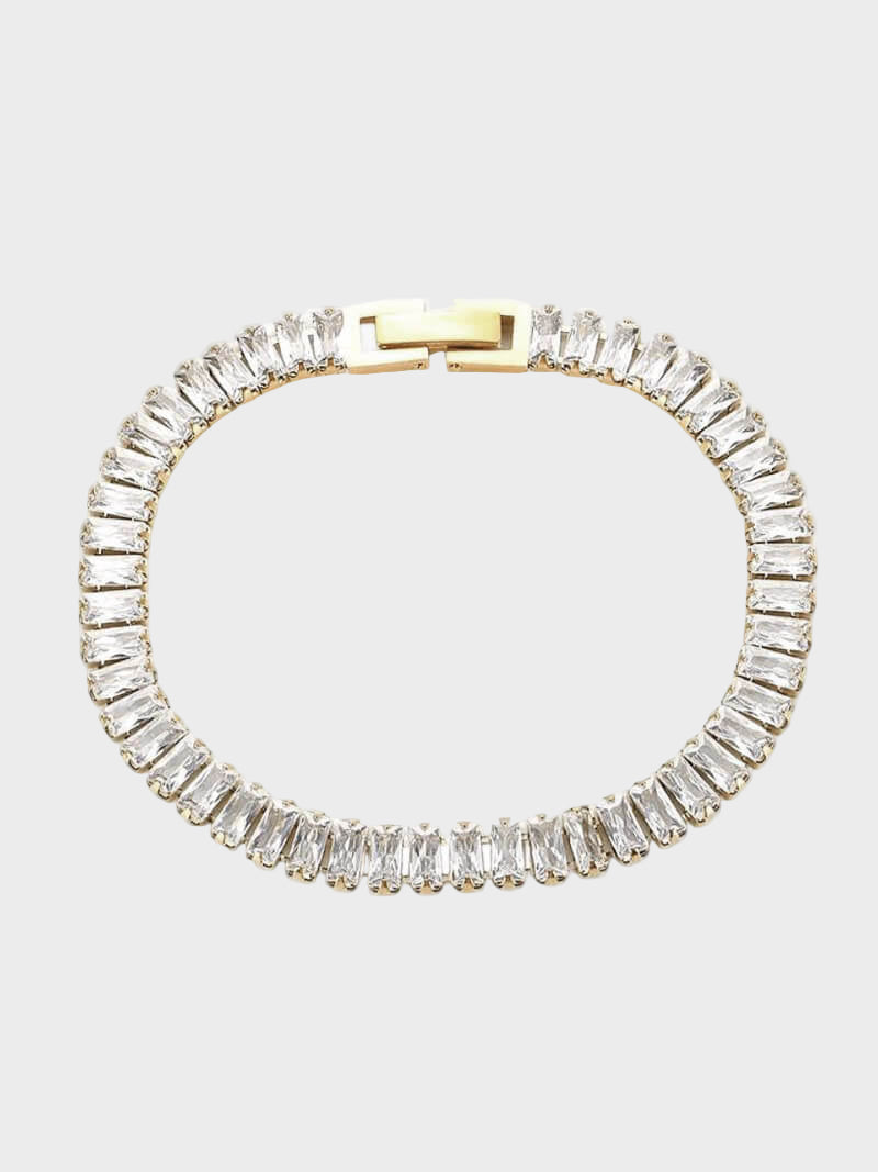 Elegantně obepíná zápěstí a obdélníkové zirkony mu dodávají lesk a radost.