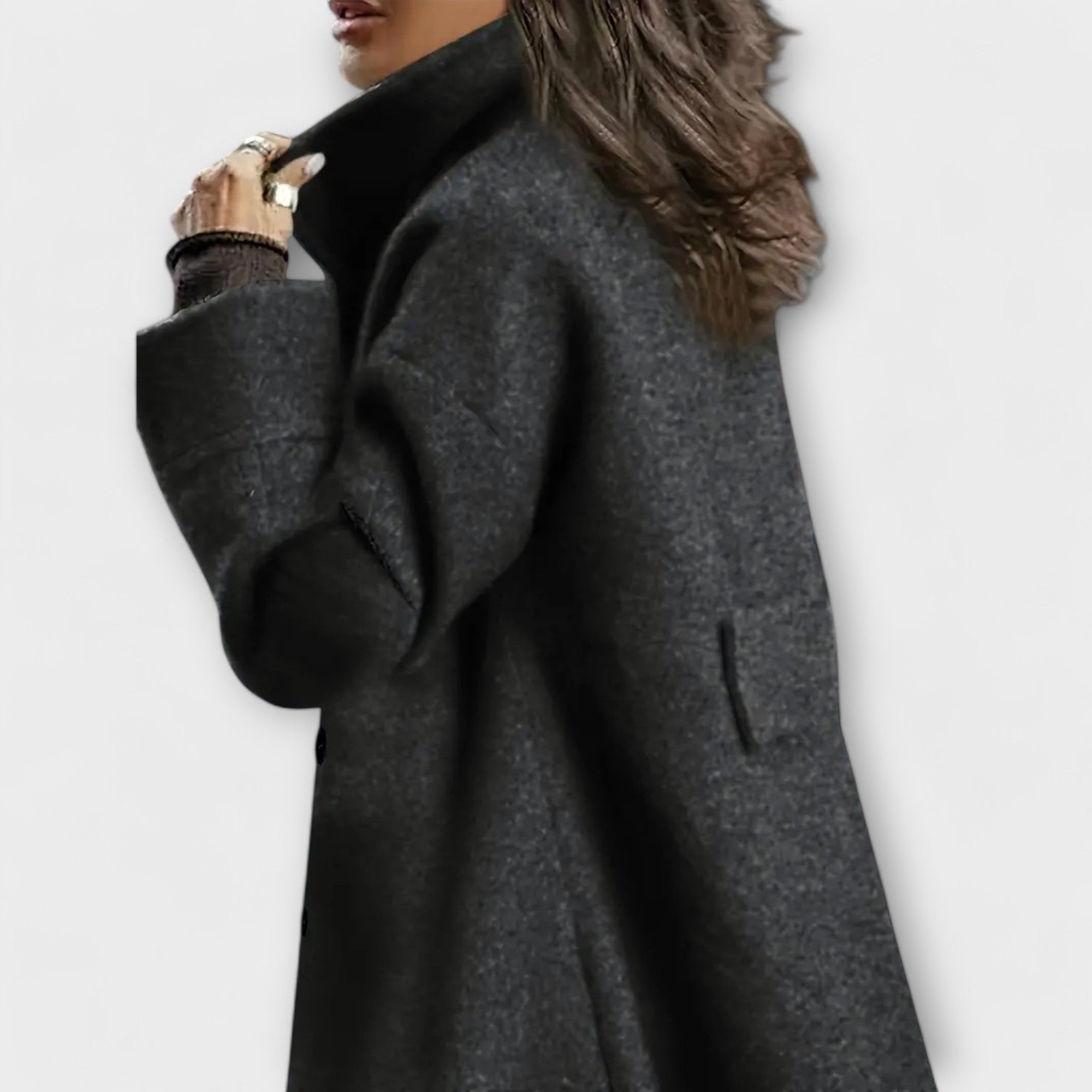 Vyrobená z vysoce kvalitní termo tkaniny, zaručuje optimální teplo, aniž by obětovala pohodlí. Její silueta nabízí uvolněný a chic vzhled, ideální pro nošení s pulovry nebo šaty.