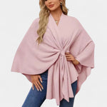 Toto lehké volné pončo je skutečným magnetem na stylové okamžiky – ať už v běžné dny nebo při zvláštních příležitostech. Šikovně uvázaný uzel vpředu vytváří rafinovaný efekt drapérie, zatímco prostorný střih zajišťuje naprostou svobodu pohybu. Módní kousek, který dokonale kombinuje eleganci a pohodlí.