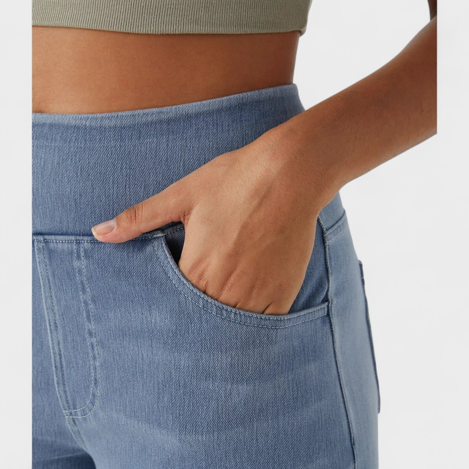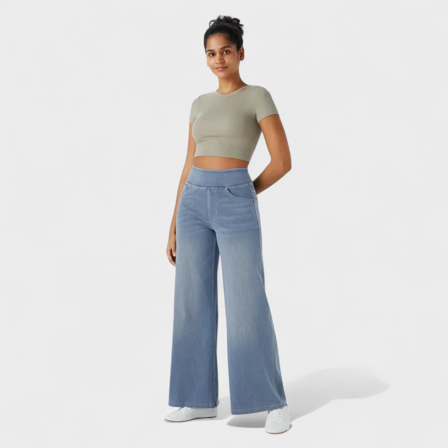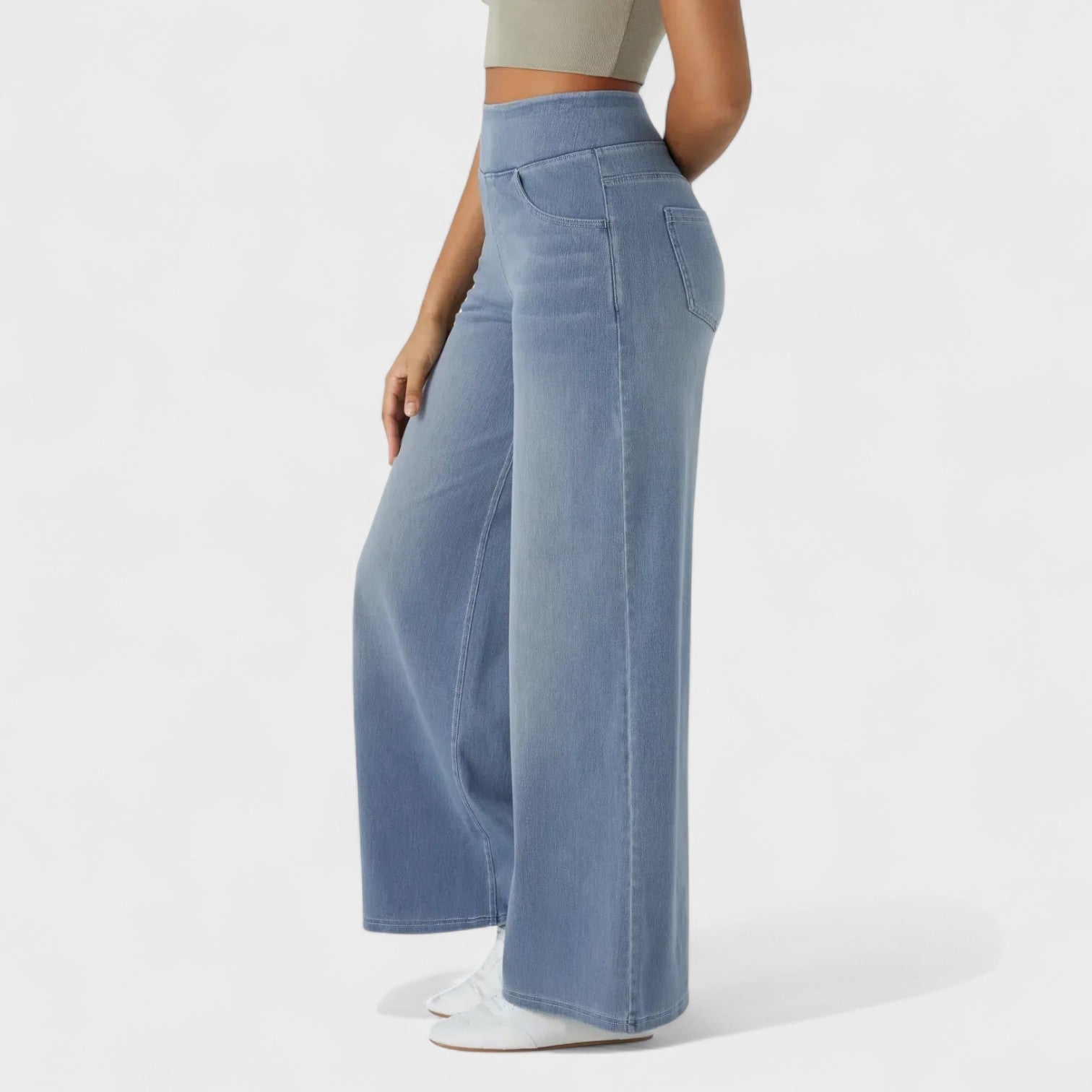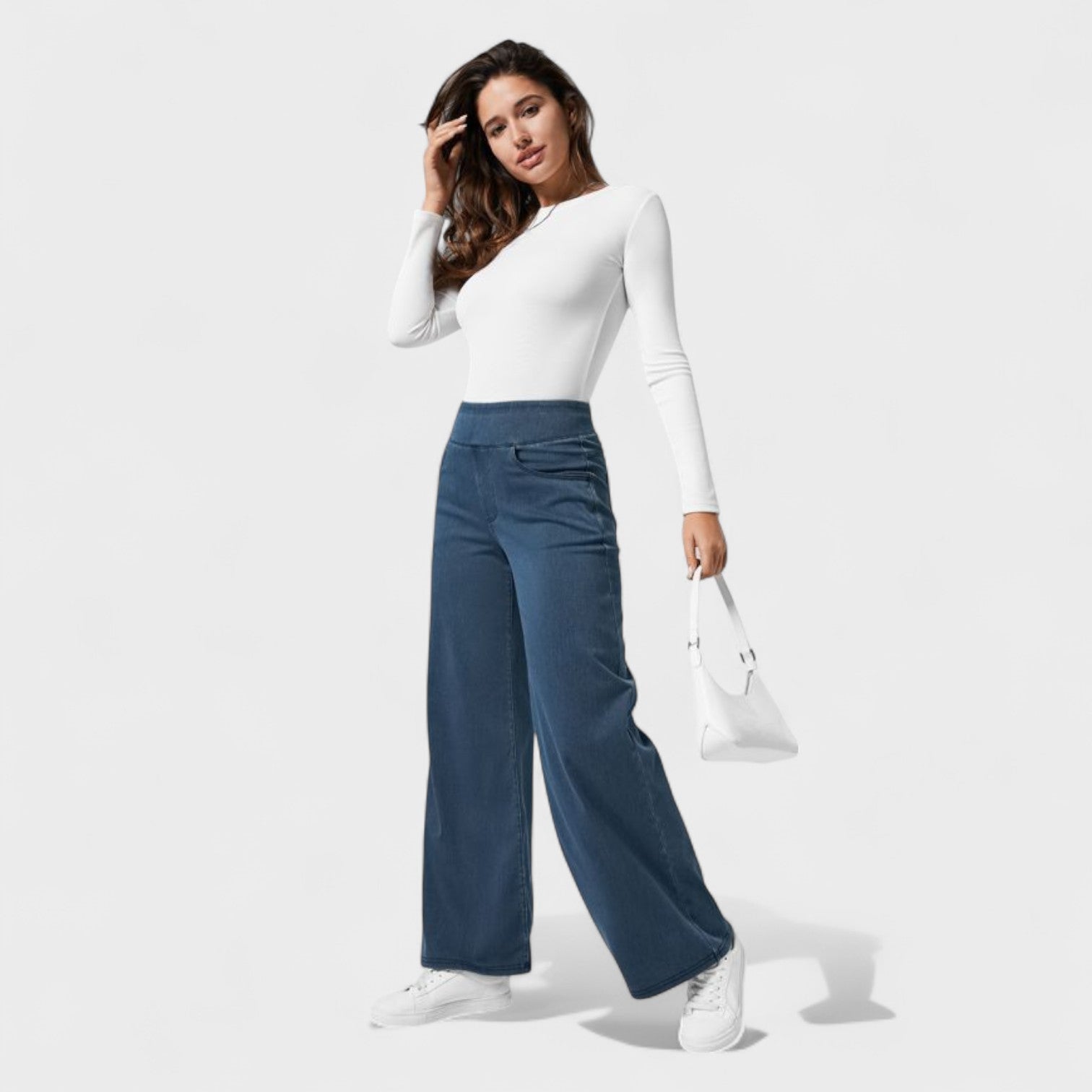 Objevte dokonalou rovnováhu mezi pohodlím a elegancí s džíny Clara. Jejich široký střih prodlužuje siluetu, aniž by obětoval pohodlí, což je ideální pro aktivní ženy, které chtějí vypadat skvěle každý den.