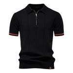 Hedvábný, prodyšný a snadno nositelný — Polo tričko Eros s zipem má jemnou vertikální pletenou texturu a kontrastní rukávy pro čistý a moderní vzhled. Vyrobeno z elastického směsného viskózového materiálu, udržuje si svůj tvar a zůstává pohodlné, ať už míříte do kanceláře, na večeři nebo o víkendu.