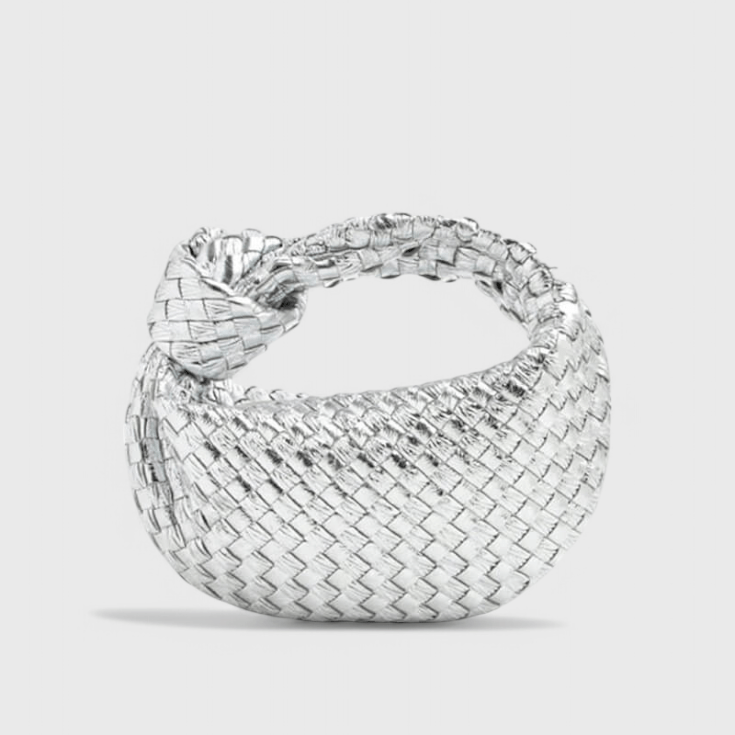 Materiál a povrchová úprava: Měkká veganská kůže, vyrobená v Itálii, s tkaným vzorem a stříbrnou nerezovou ocelí.