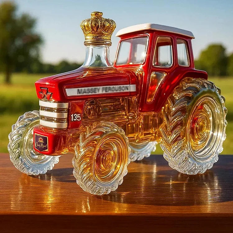 Skleněná láhev na whiskey ve tvaru traktoru