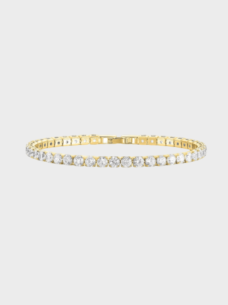 Tento náramek s kamínky vyzařuje rafinovanou eleganci a moderní kouzlo. Jeho design s třpytivými kamínky zachycuje světlo a dokonale se hodí k různým stylům – od večerních šatů po jednodušší denní kombinace. S atraktivním nadčasovým vzhledem dodává každému outfitu nádech luxusu a subtilní ženskosti.