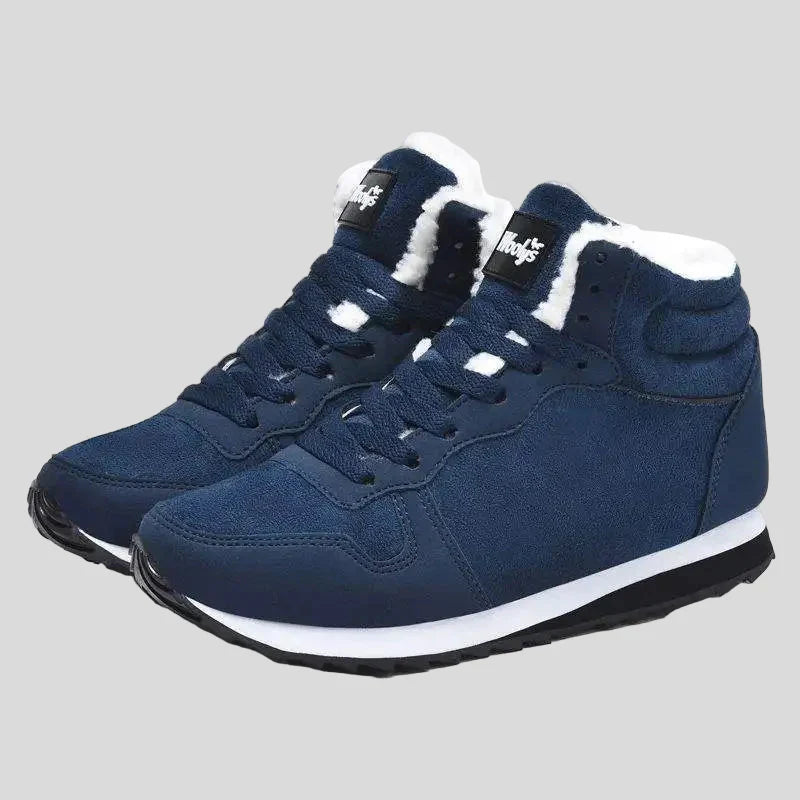 Tyto sportovní boty s vysokým kotníkem v elegantní tmavě modré barvě dokonale kombinují městskou estetiku s termální funkčností. S designem, který připomíná retro běžecké tenisky, jsou ideální volbou, jak udržet nohy v teple, aniž byste obětovali vzhled.