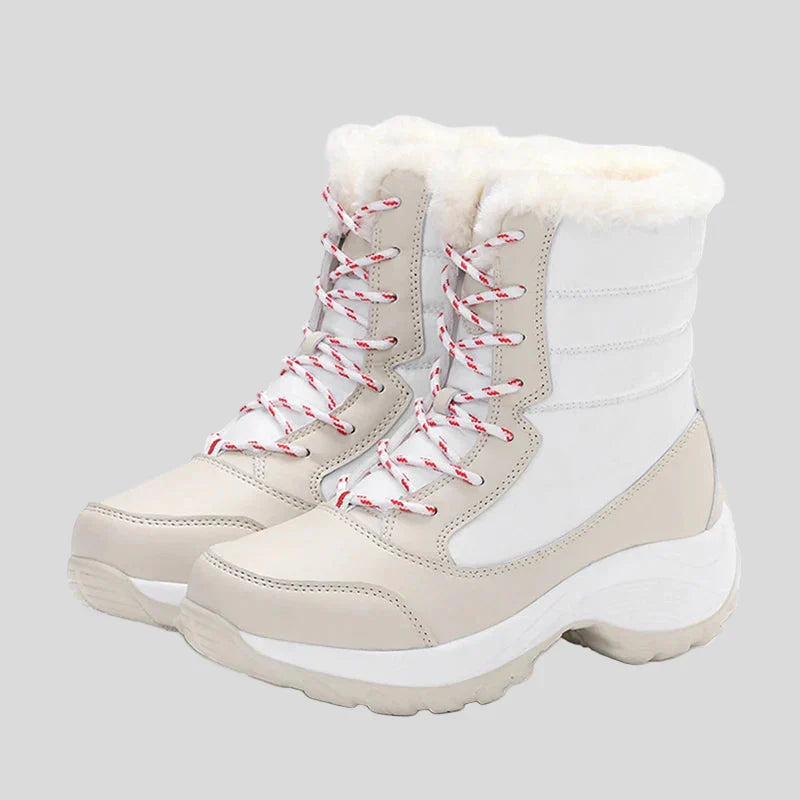 Prémiová izolace: Okraje bot jsou bohatě polstrované tlustou podšívkou z umělé kožešiny (bílé nebo krémové), která se rozprostírá po celém interiéru, zajišťující výjimečnou tepelnou izolaci proti extrémnímu chladu.