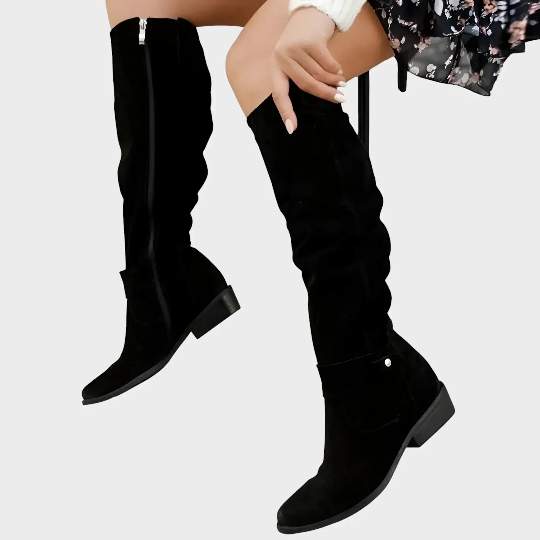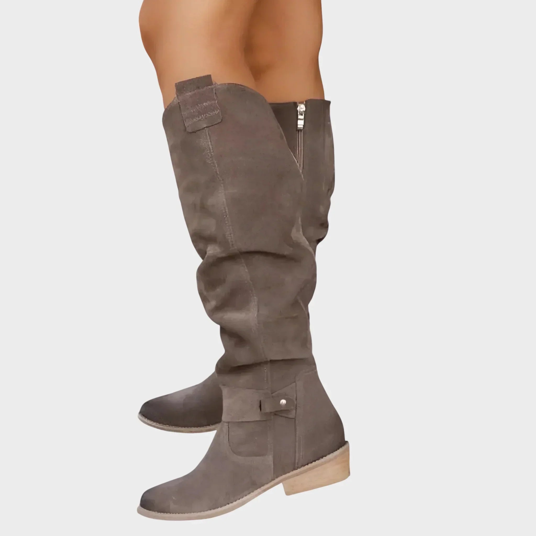 Tila - Kozačky z kůže po kolena s elegantním zipem
