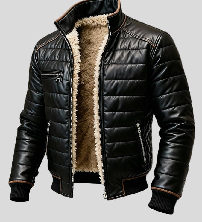 TOMAS - Černá prošívaná bunda s podšívkou ze šerpy