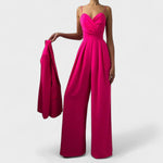 Tento dlouhý overal s tenkými ramínky a zkříženým výstřihem je ideální volbou pro ženy, které hledají rafinovanost s moderním nádechem. S dobře definovaným pasem, který zvýrazňuje siluetu, poskytuje výjimečný vzhled při jakékoli příležitosti – od elegantních večeří po speciální události. Jeho minimalistický design ho proměňuje v univerzální kousek, který se snadno kombinuje s odvážnými nebo diskrétními doplňky, v závislosti na vašem stylu.