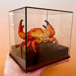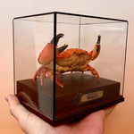 Skutečný krab je vyčištěn, konzervován a sušen pro trvalou prezentaci. Struktura skořápky a intenzita barev jsou zachovány. Umístěn tak, aby vynikla forma těla a přirozené zbarvení.
