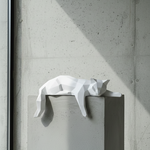 Geometrická abstrakce, která je náhodou ve tvaru kočky. Konstrukce z pryskyřice na úrovni muzea. Matný povrch, který se krásně fotografuje. Designový jazyk high-end obchodů s nábytkem a architektonických časopisů.