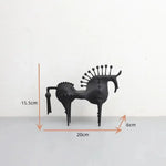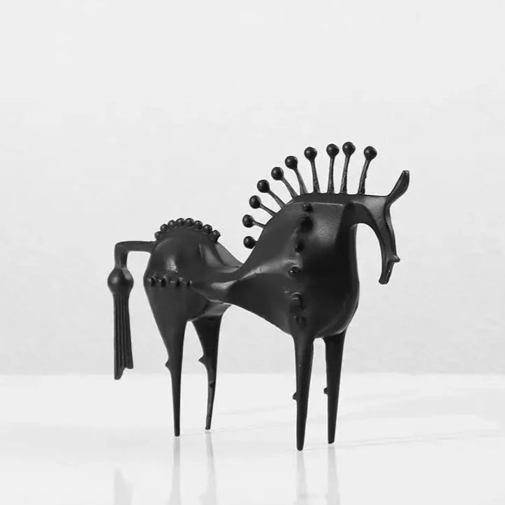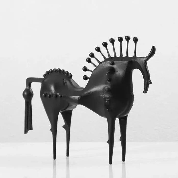 Vyrobený s hravou precizností, tento ručně kovaný železný kůň kombinuje rustikální eleganci s tím správným nádechem podivnosti. Ať už jste milovník koní nebo sběratel kuriozit, je nemožné se na tomto kousku neusmívat.