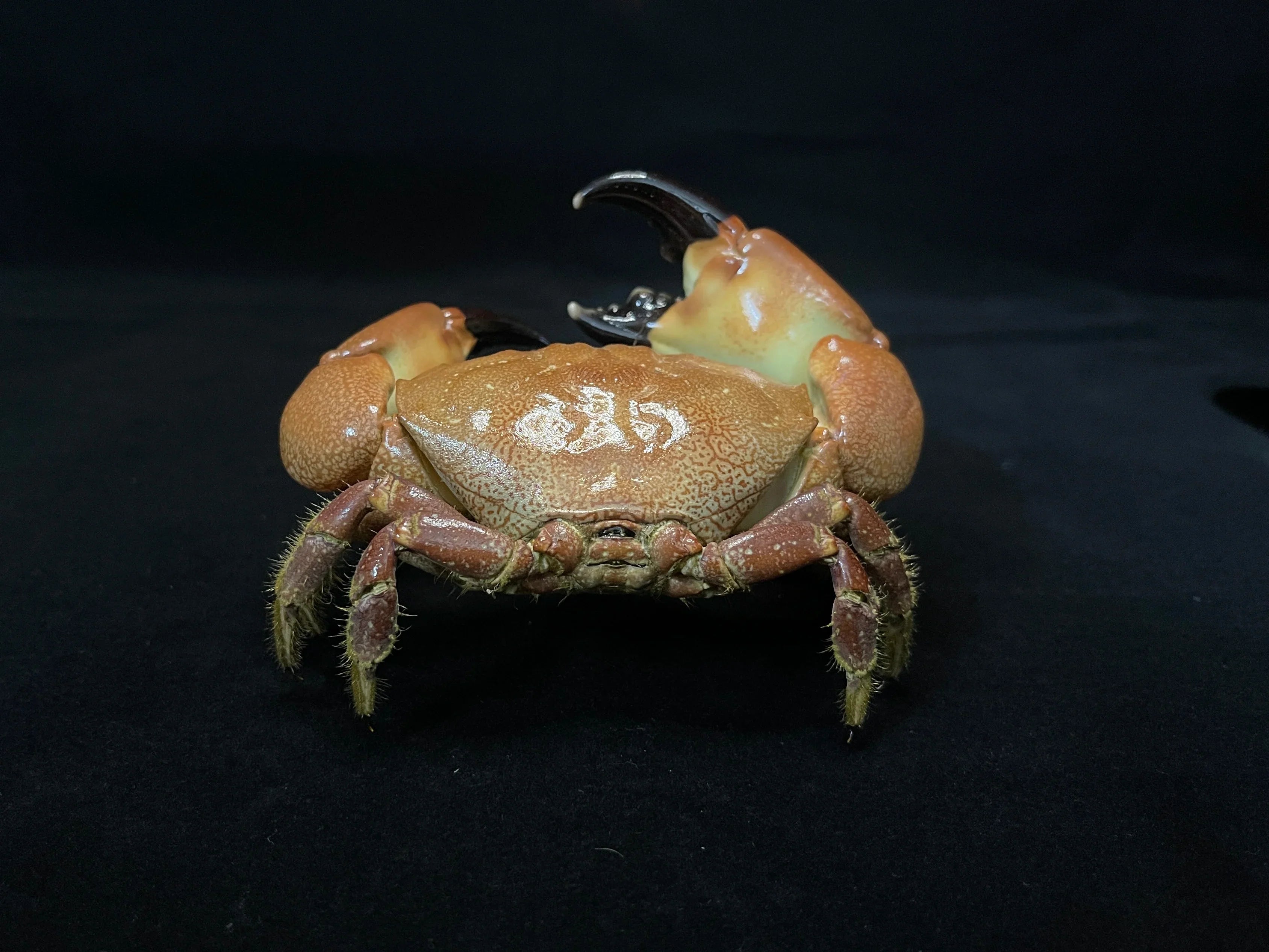 Křehké i přes robustní vzhled. Manipulujte za tělo, nikoli za klepeta nebo nohy. Velká klepeta se mohou zlomit v kloubech, pokud jsou nesprávně manipulována. Správně podporujte hmotnost.