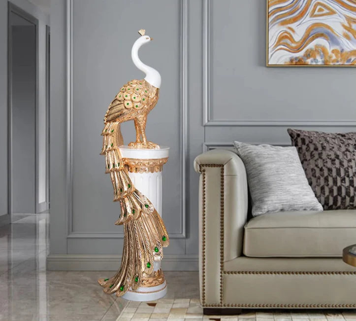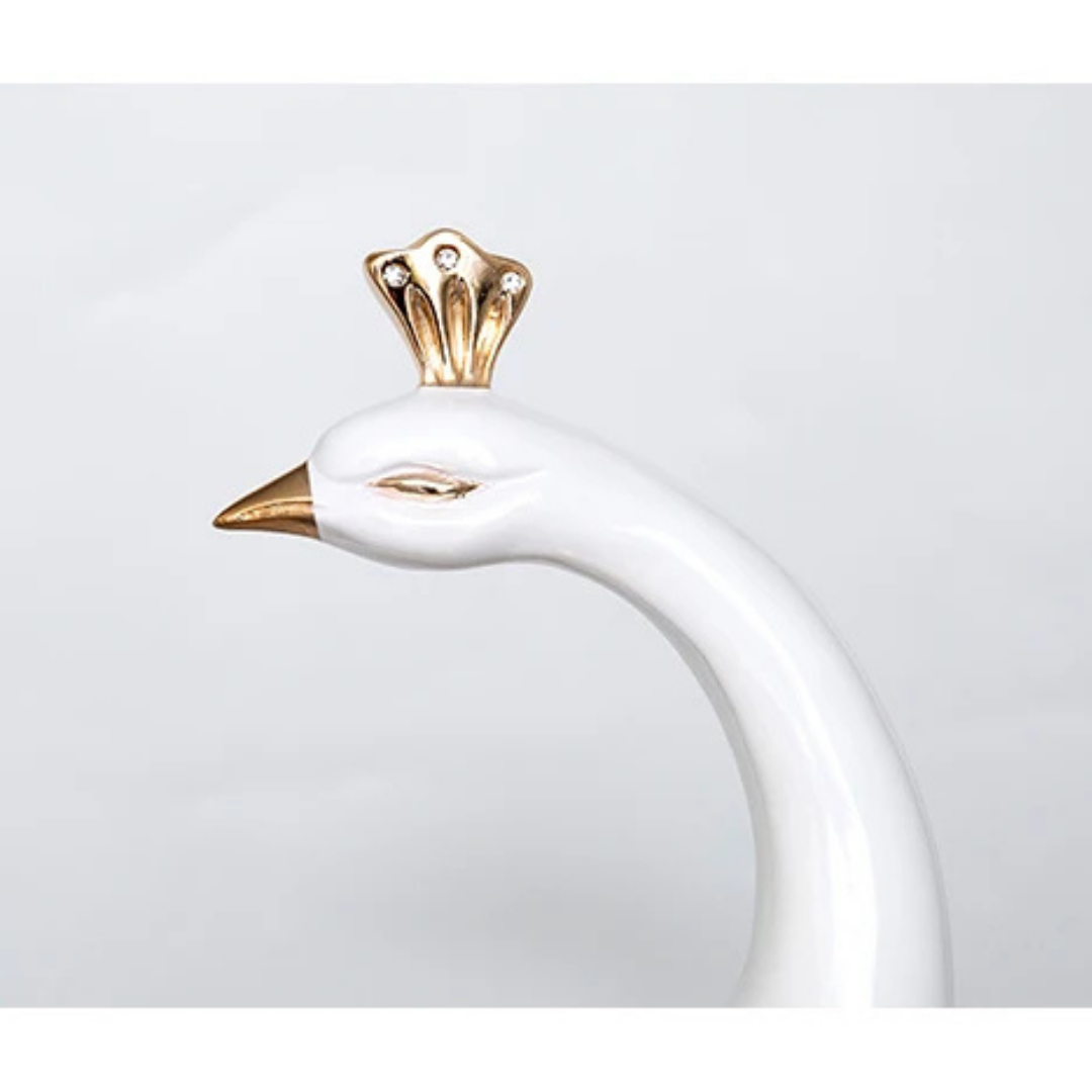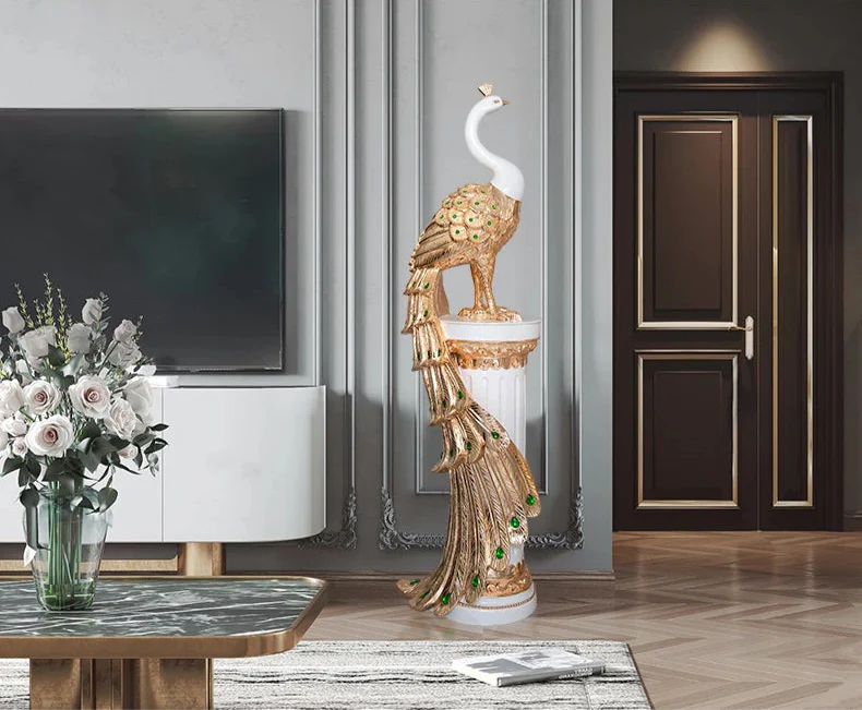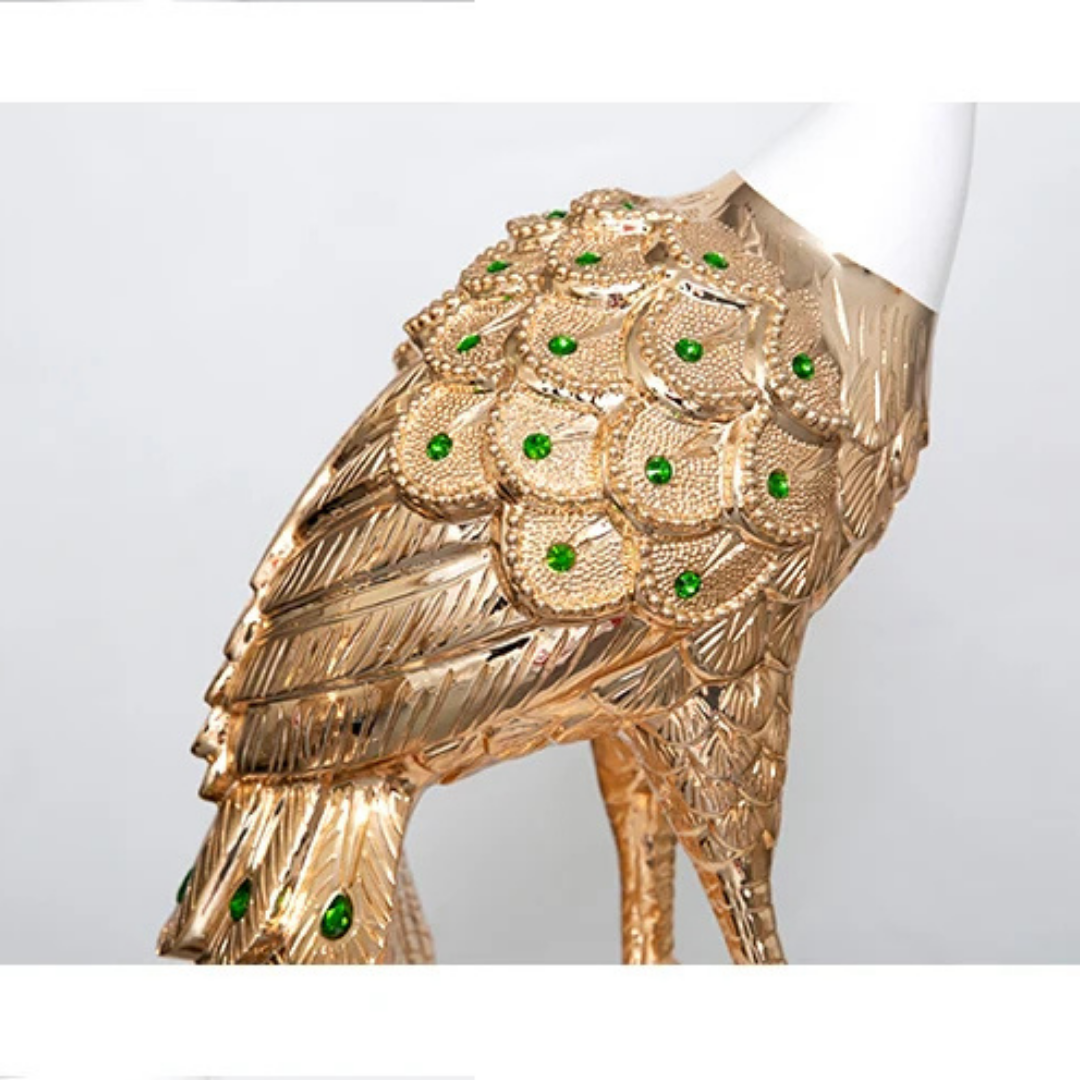 Vneste eleganci a opulentnost do svého domova se Sochou Velkého Páva — ohromujícím výtvarným kouskem, který zachycuje majestátní krásu páva v moderní, vyvýšené podobě. Navržena pro ty, kteří ocení sofistikovanost a symboliku, tato dekorativní socha měří 70 cm na výšku, což z ní činí ideální středobod pro televizní skříně, konzolové stolky, kancelářské prostory nebo luxusní vstupy.