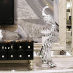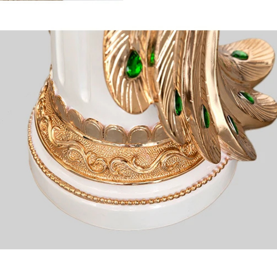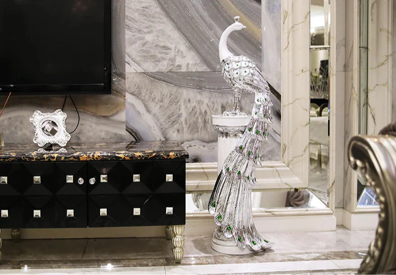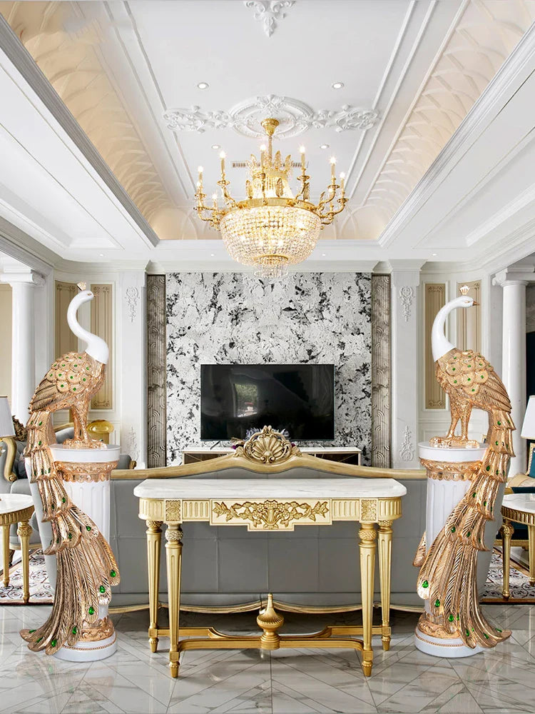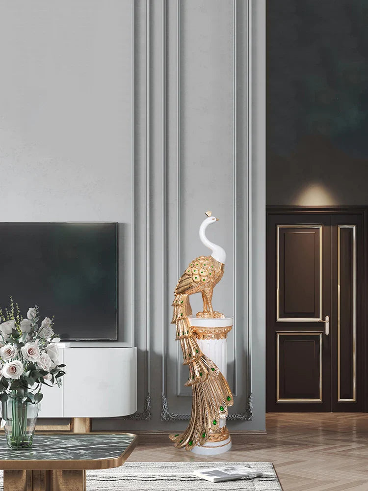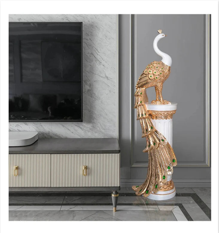 Vneste eleganci a opulentnost do svého domova se Sochou Velkého Páva — ohromujícím výtvarným kouskem, který zachycuje majestátní krásu páva v moderní, vyvýšené podobě. Navržena pro ty, kteří ocení sofistikovanost a symboliku, tato dekorativní socha měří 70 cm na výšku, což z ní činí ideální středobod pro televizní skříně, konzolové stolky, kancelářské prostory nebo luxusní vstupy.