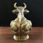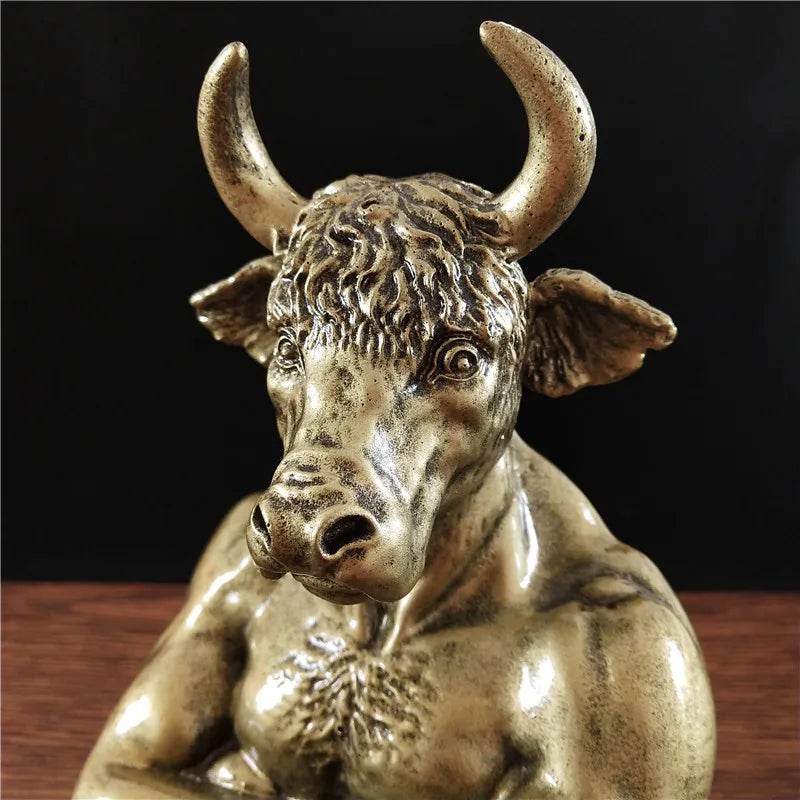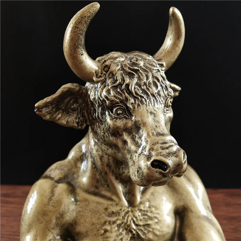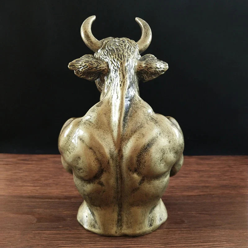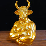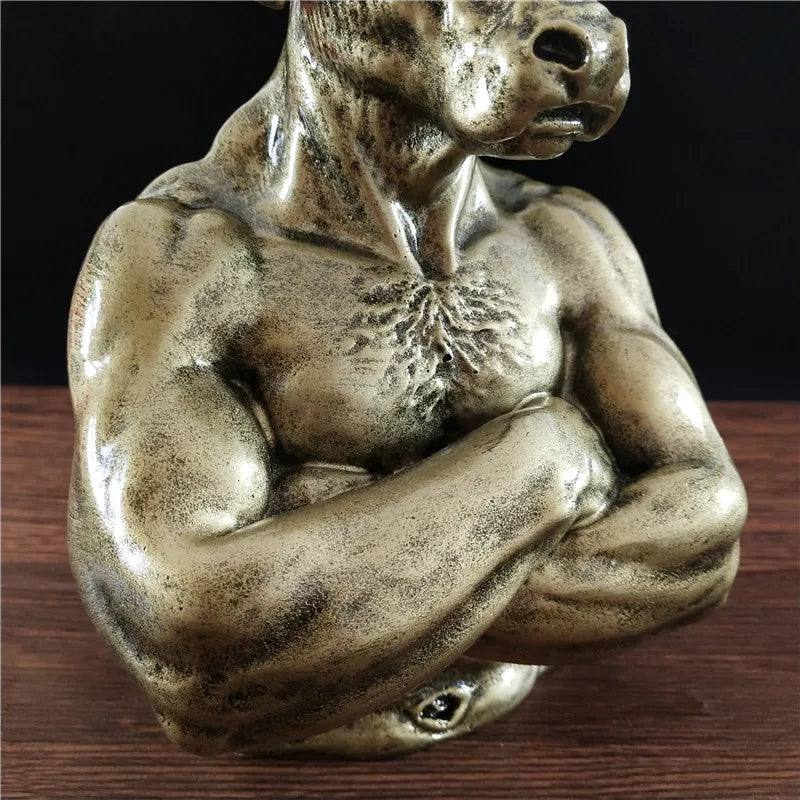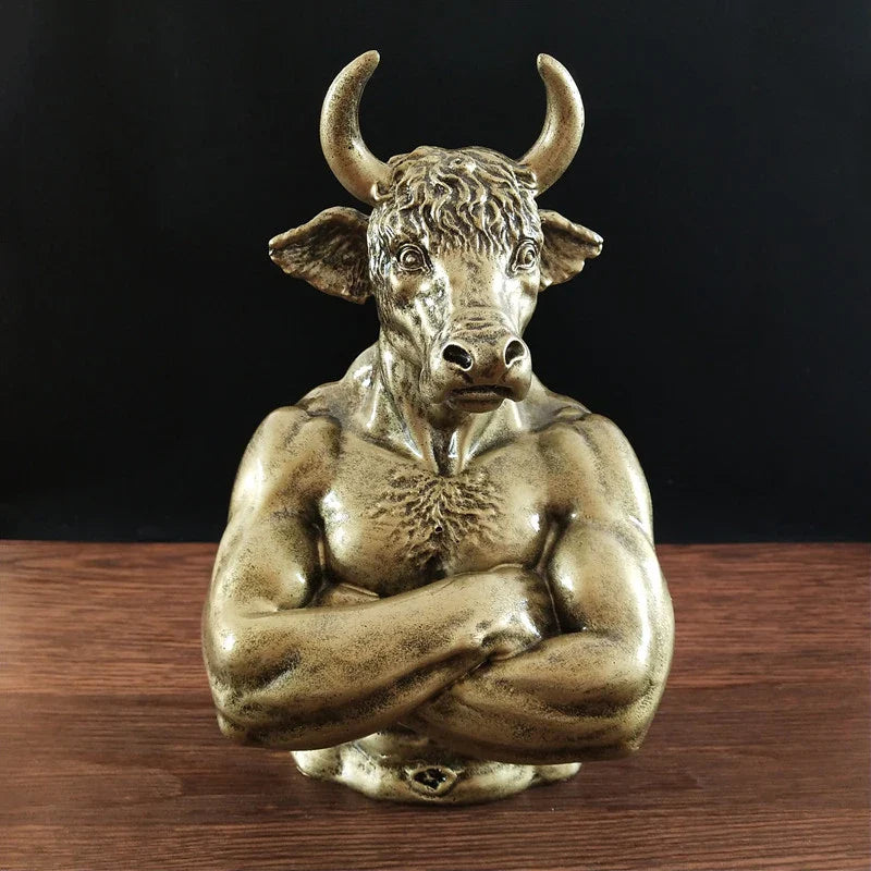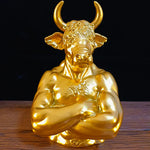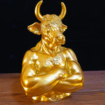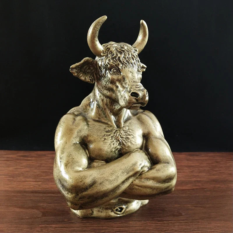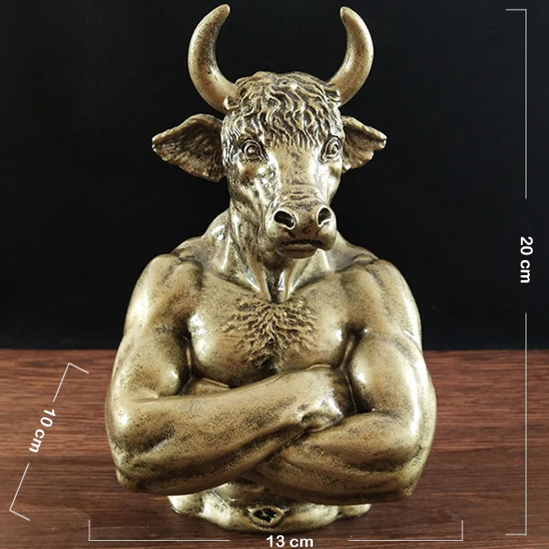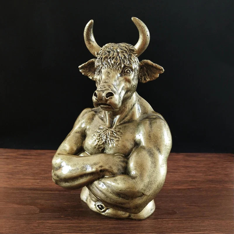 Udělejte odvážné prohlášení o síle, moci a neomalené přítomnosti s Titan Bull — nápadnou sochou ve zlatém tónu, která spojuje mytologii a moderní umění. Socha představuje impozantní hlavu býka na vysoce detailním, svalnatém lidském trupu se zkříženýma rukama v defiance a sebevědomí, tato socha je víc než jen dekorace — je to symbol.