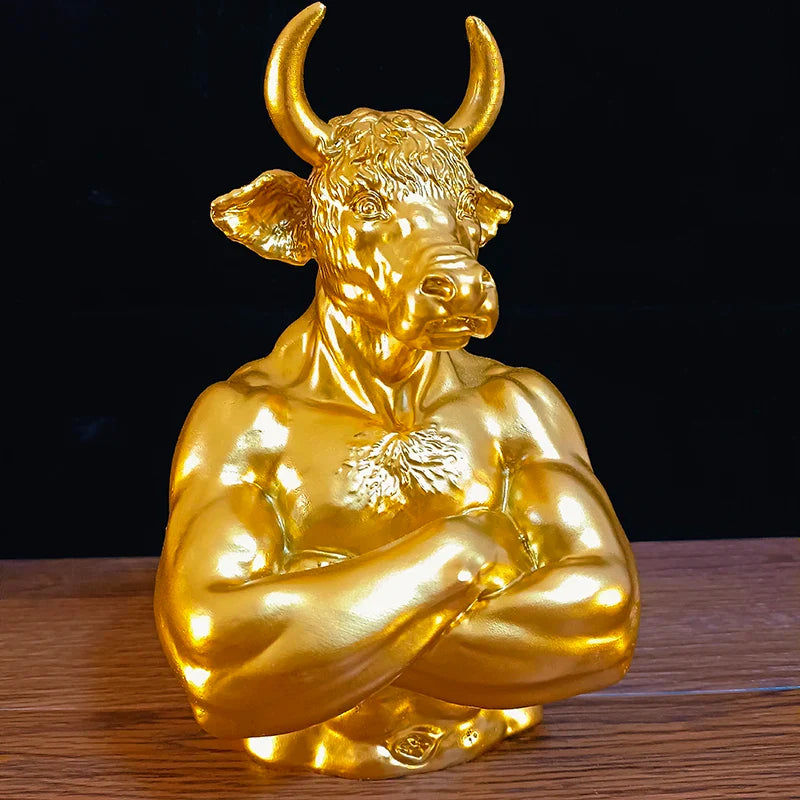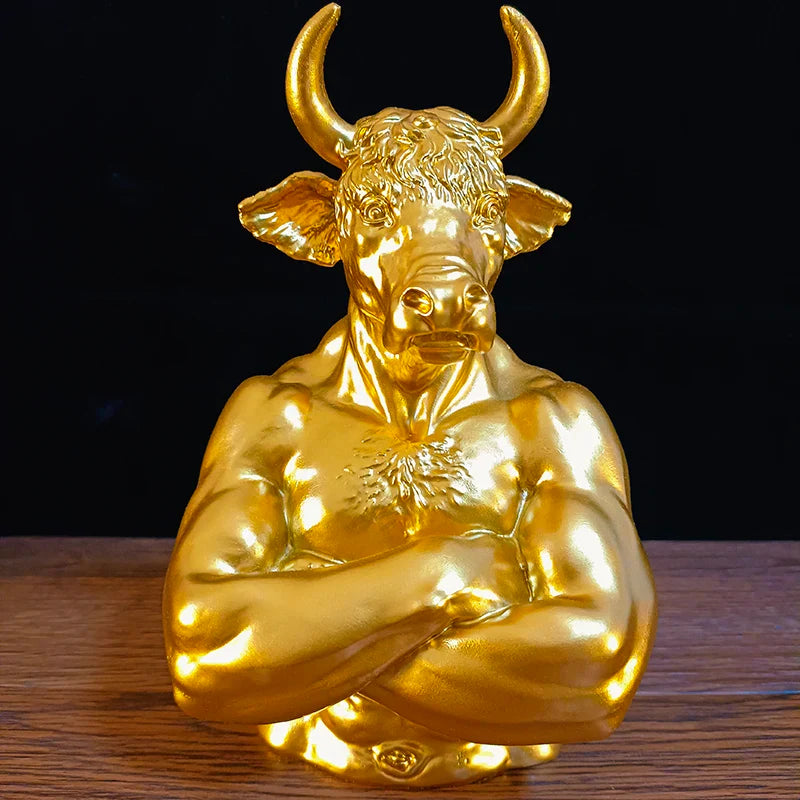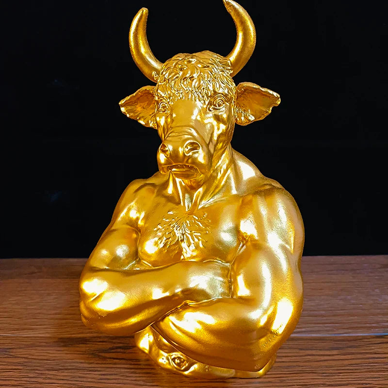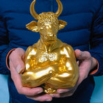 Titan Bull – Socha hlavy zlatého býka se zkříženýma rukama