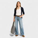 Tyto džíny s volným střihem kombinují pohodlí měkkého denimu s moderním střihem, který prodlužuje a zvýrazňuje siluetu.