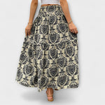 Objevte čistou svobodu s touto sukní, která vypráví příběhy. Unikátnost vzoru a pohodlný materiál dodávají vašemu vzhledu zvláštní nádech elegance.