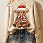 CIA - Pohodlný pletený svetr s designem krávy z Highlands pro ženy