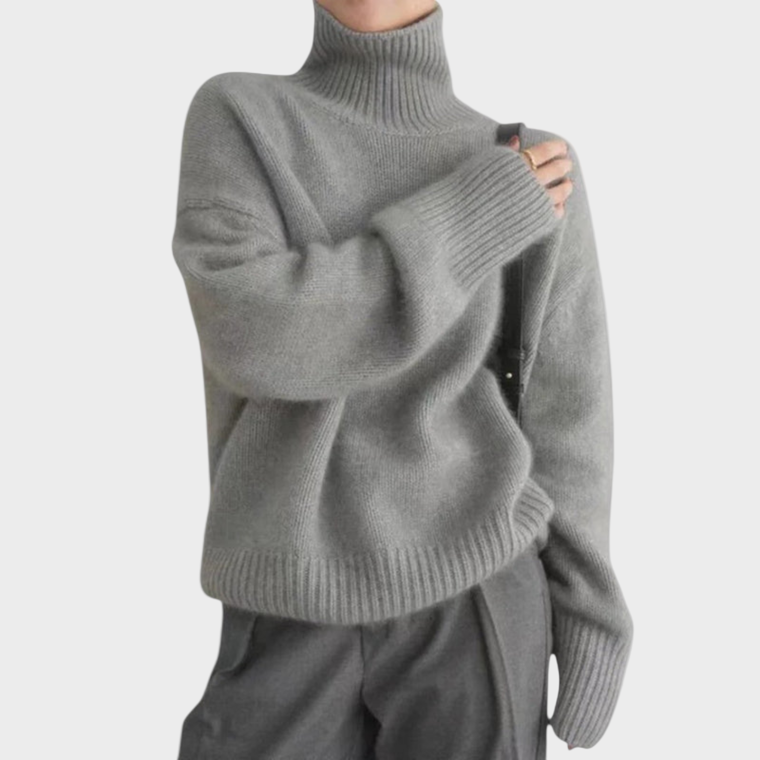 Nadčasový styl: Užijte si jednoduchou eleganci s tímto prémiovým svetrem s vysokým límcem, navrženým tak, aby vydržel. Isabella vám nabízí kousek, kde se moderní móda setkává s klasickou estetikou — vždy vypadáte sofistikovaně a stylově.