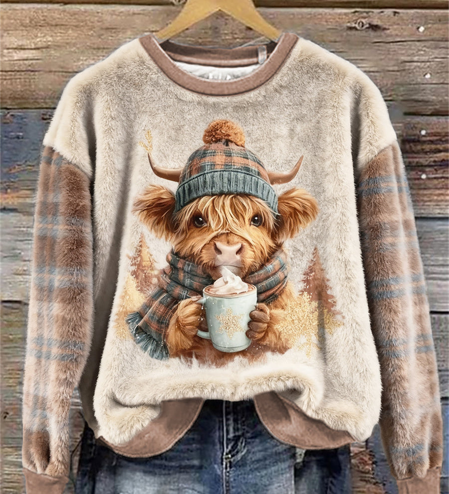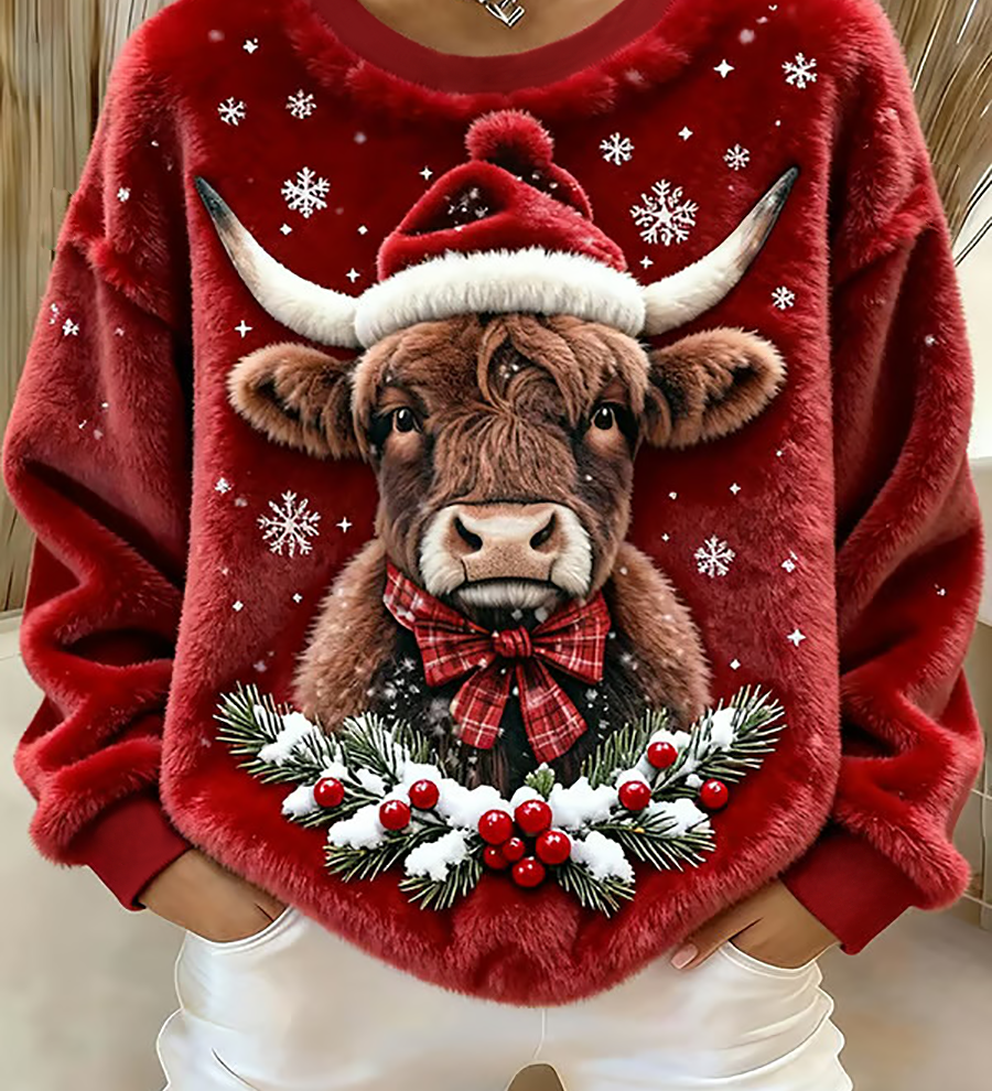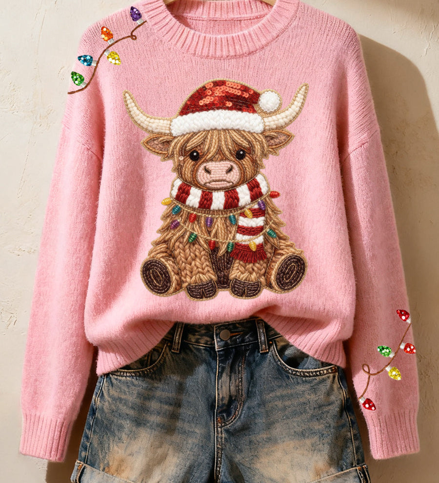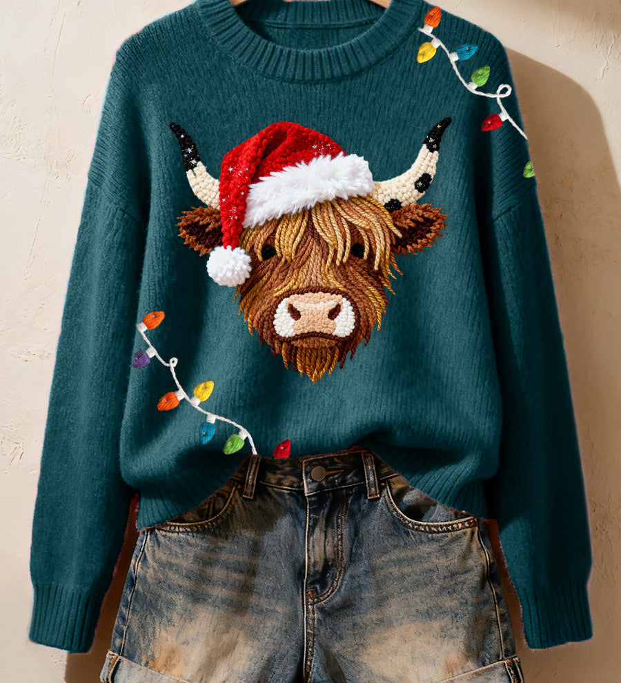 CIA - Pohodlný pletený svetr s designem krávy z Highlands pro ženy