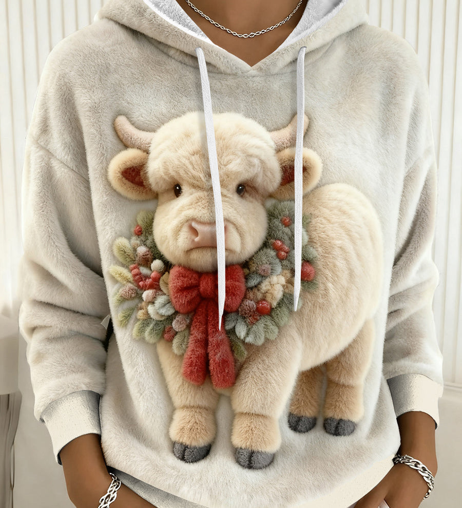 DORA - Flanelová mikina s vánočním kravským vzorem