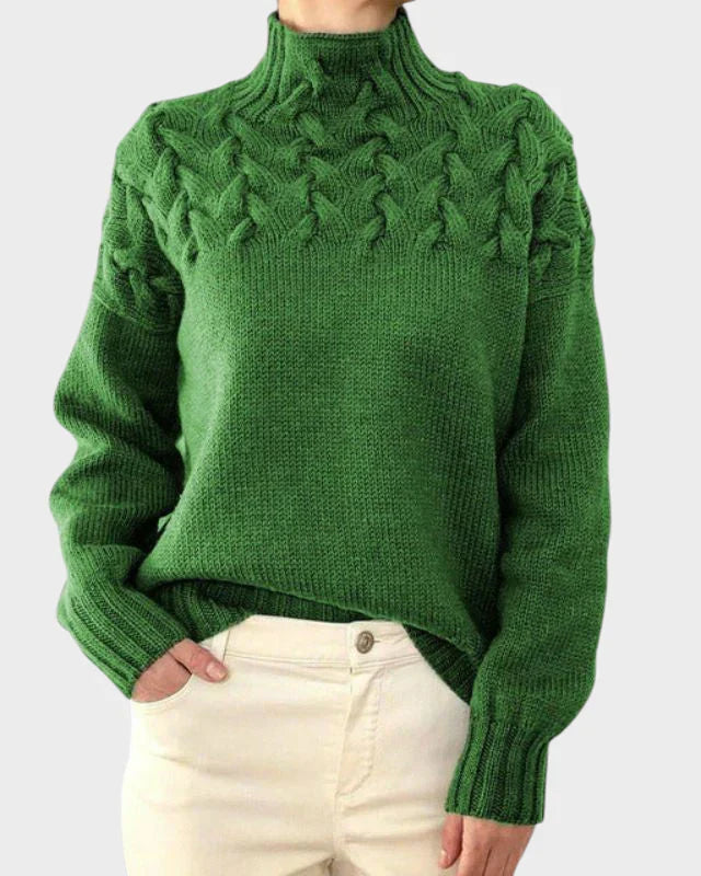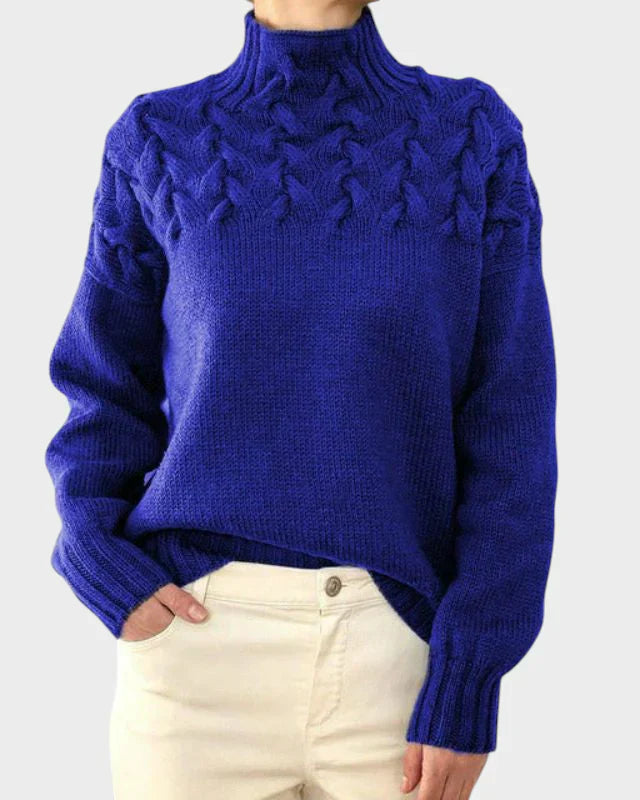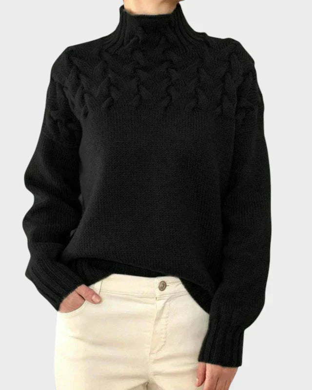 Úžasná pletená struktura dělá tento pohodlný svetr ideální pro vrstvení v chladnějších měsících, protože tě udržuje v teple bez kompromisů ve tvém stylu.