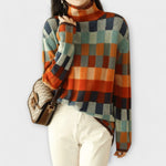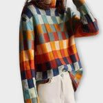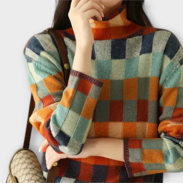 Tento pohodlný a elegantní svetr se vyznačuje svým živým kostkovaným vzorem. S vysokým límcem a lichotivým střihem je to výjimečný kousek, který snadno zvýrazní jakýkoli outfit.