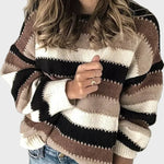 Svetr Pruhovaný kombinuje měkkou pletenou texturu, moderní pruhovaný vzor a uvolněný střih pro celodenní komfort. Dokonalý kousek pro každodenní styl s nádechem elegance.